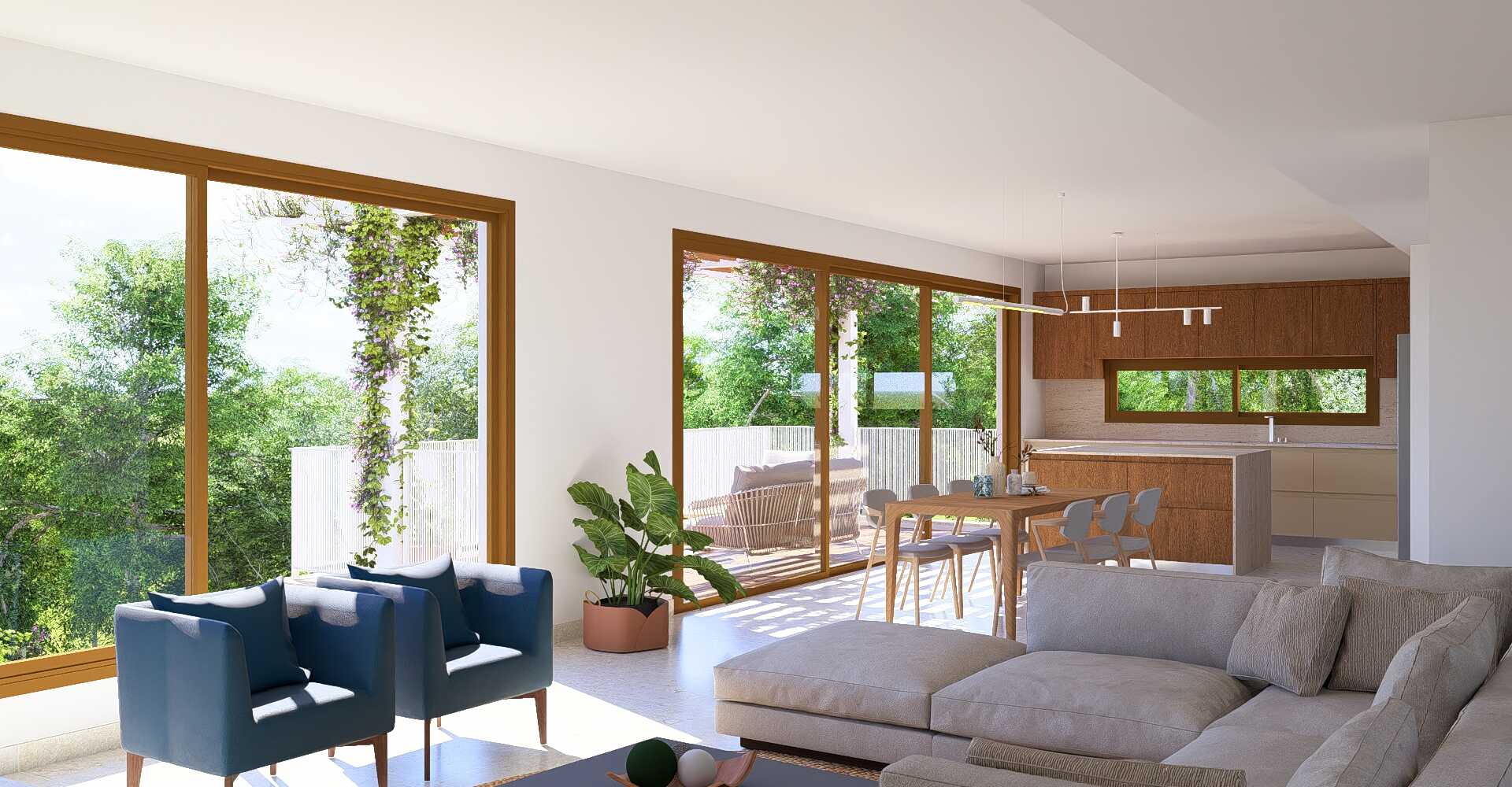 בתים עם חללים מוארים, פתחים רחבים ומרפסות לנוף