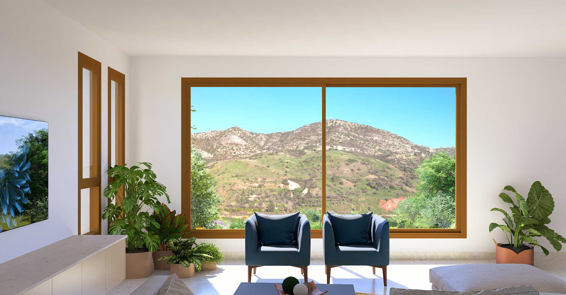 שילוב של אדריכלות קפריסאית מסורתית עם אלמנטים עכשוויים, נוף עמק והרים, וחיים שלווים דקות מפאפוס